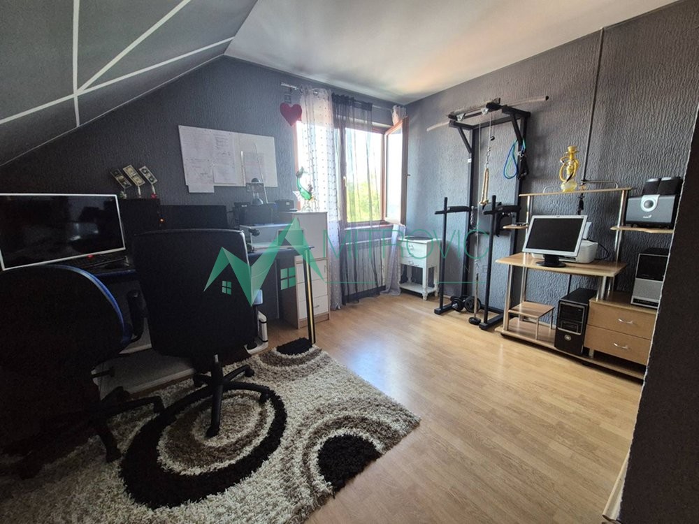 Na prodaju spratna kuća od 214m2 u Čereviću. Dvorište je podeljeno na prednji i zadnji deo (iza letnje kuhinje). Pored same kuće na placu se nalazi i letnja kuhinja površine 71m2 u čijem se sklopu nalazi kupatilo, spavaća soba, radioica, šupa, garaža. Kuća sadrži sledeće prostorije: u prizemlju su dnevna soba, odvojena trpezarija sa kuhinjom, kupatilo, na drugom nivou se nalaze: dnevna soba, kuhinja i trpezarija, tri sobe, terasa, kupatilo, hodnik.. Centralno grejanje na gas + mogućnost grejanja na čvrsto gorivo, dve inverter klime... Kontakt telefon: Ivana - 0693831006