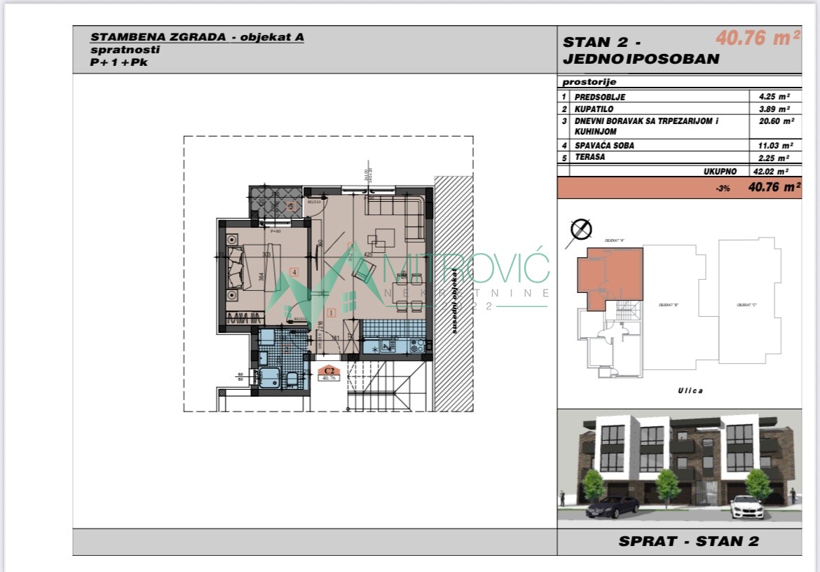 Na samoj granici sa Telepom, u blizini Bulevara Patrijarha Pavla, smeštena je zgrada sa malim brojem stanova, spratnosti pr+1+pk. Odličan kvalitet gradnje i opreme, modernog izgleda, sa portalima velikih profila. Grejanje na toplotne pumpe. Pored redovnih jednoiposobnih stanova od 38m2 i 41m2, manjeg dvoiposobnog stana od 49m2, na različitim etažama i orijentisanosti, dostupni su i garaža-stanovi od 26m2 do 31m2, takođe jednoiposobni.. Završetak gradnje jun 2026.godine. Izražena cena je sa pdv-om i agencijskom nadoknadom. Za dodatne informacije pozvati na broj 0621701819