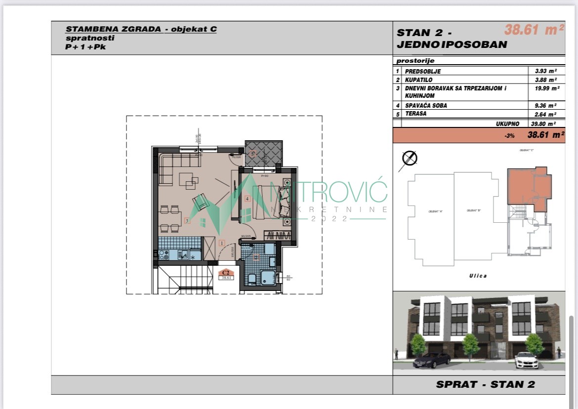 Na samoj granici sa Telepom, u blizini Bulevara Patrijarha Pavla, smeštena je zgrada sa malim brojem stanova, spratnosti pr+1+pk. Odličan kvalitet gradnje i opreme, modernog izgleda, sa portalima velikih profila. Grejanje na toplotne pumpe. Pored redovnih jednoiposobnih stanova od 38m2 i 41m2, manjeg dvoiposobnog stana od 49m2, na različitim etažama i orijentisanosti, dostupni su i garaža-stanovi od 26m2 do 31m2, takođe jednoiposobni.. Završetak gradnje jun 2026.godine. Izražena cena je sa pdv-om i agencijskom nadoknadom. Za dodatne informacije pozvati na broj 0621701819